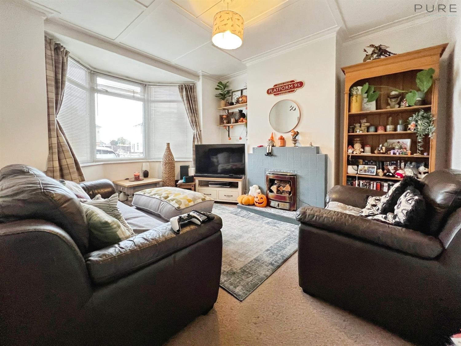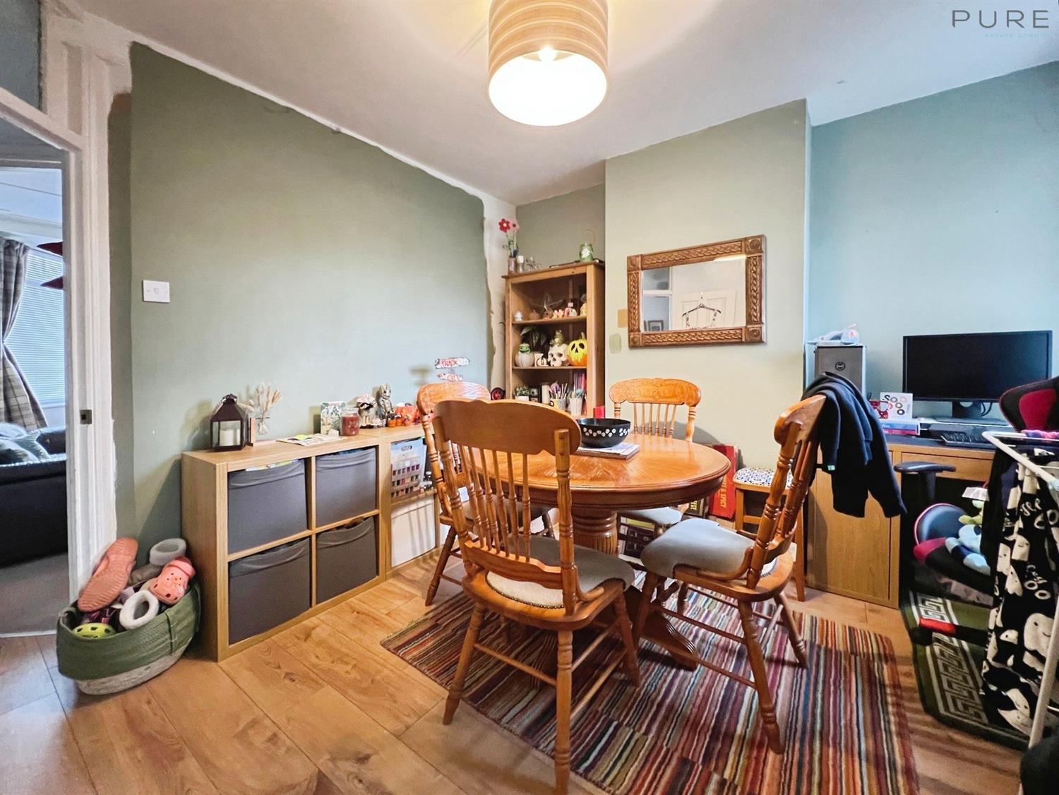 The property opens into a welcoming hallway leading to two generous reception rooms, providing versatile spaces for both relaxing and entertaining. The main reception room features an attractive bay window, allowing in an abundance of natural light and creating a bright, airy atmosphere.