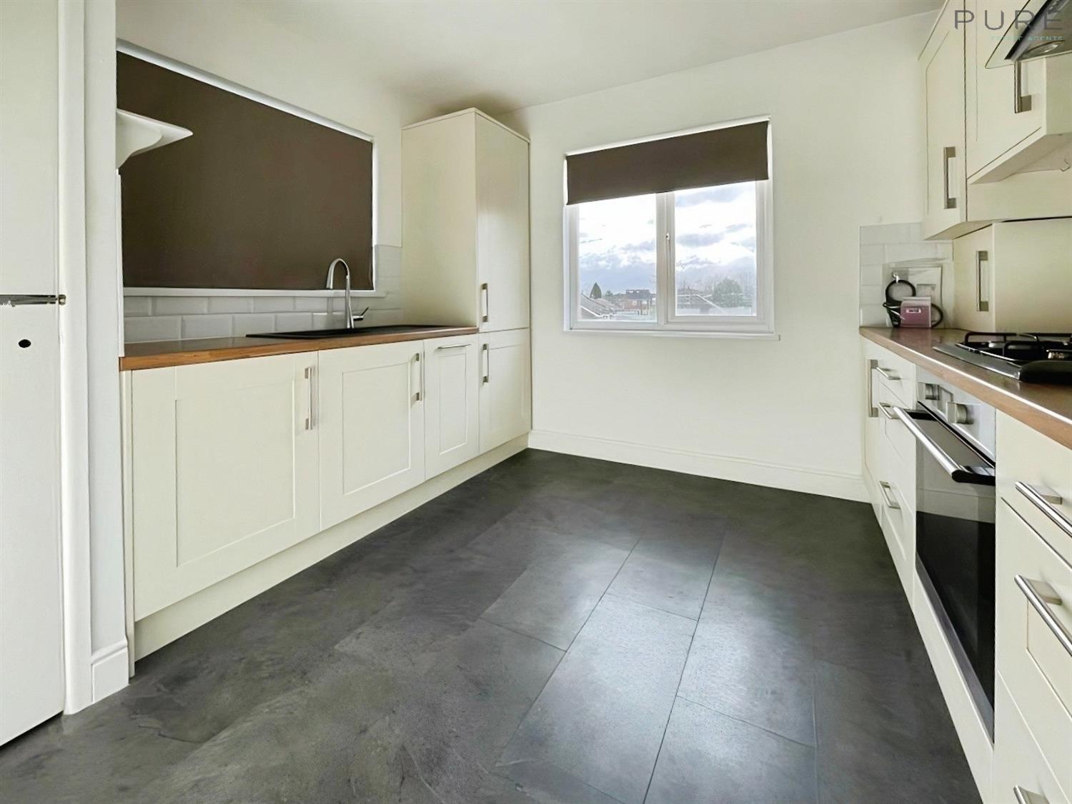 The modern kitchen enjoys good natural light and is fitted with integrated appliances, providing a practical and contemporary cooking space. The reception room benefits from a pleasant garden view and direct access to a balcony, offering an attractive outlook and useful outdoor space. The bathroom is going to be replaced before a tenant moves in. Both bedrooms are doubles, giving flexible options for a couple, or those working from home. The property also includes a single garage with parking in front, as well as additional on-street parking.