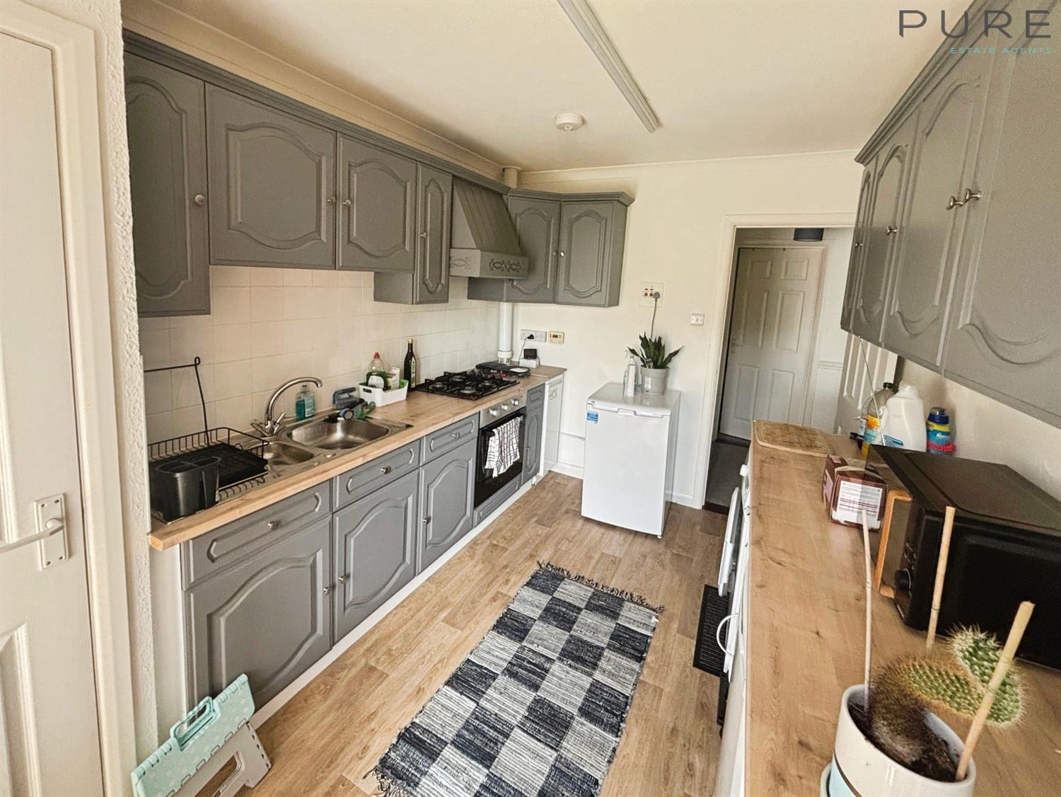 The property comprises one reception room, a fitted kitchen with direct access to the garden, two bedrooms and a bathroom. The main bedroom benefits from built-in wardrobes, providing useful storage. Gas heating serves the property. Externally, there is a private garden, a single garage and off-road parking.