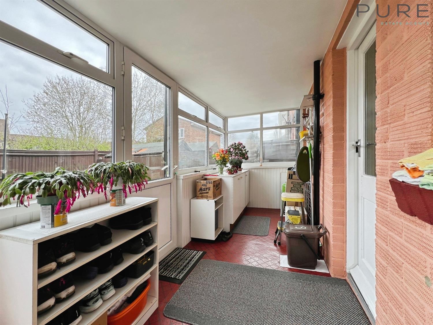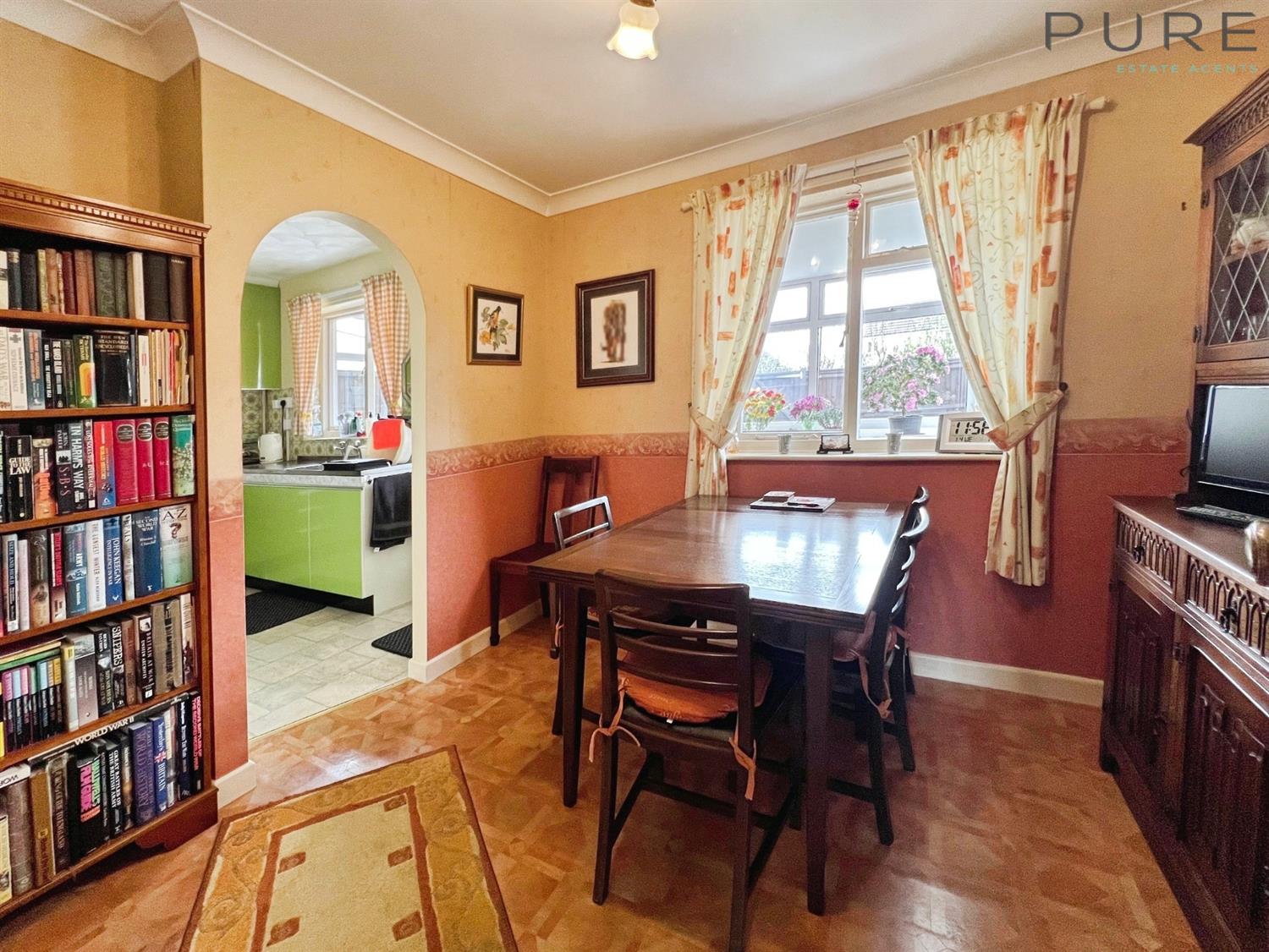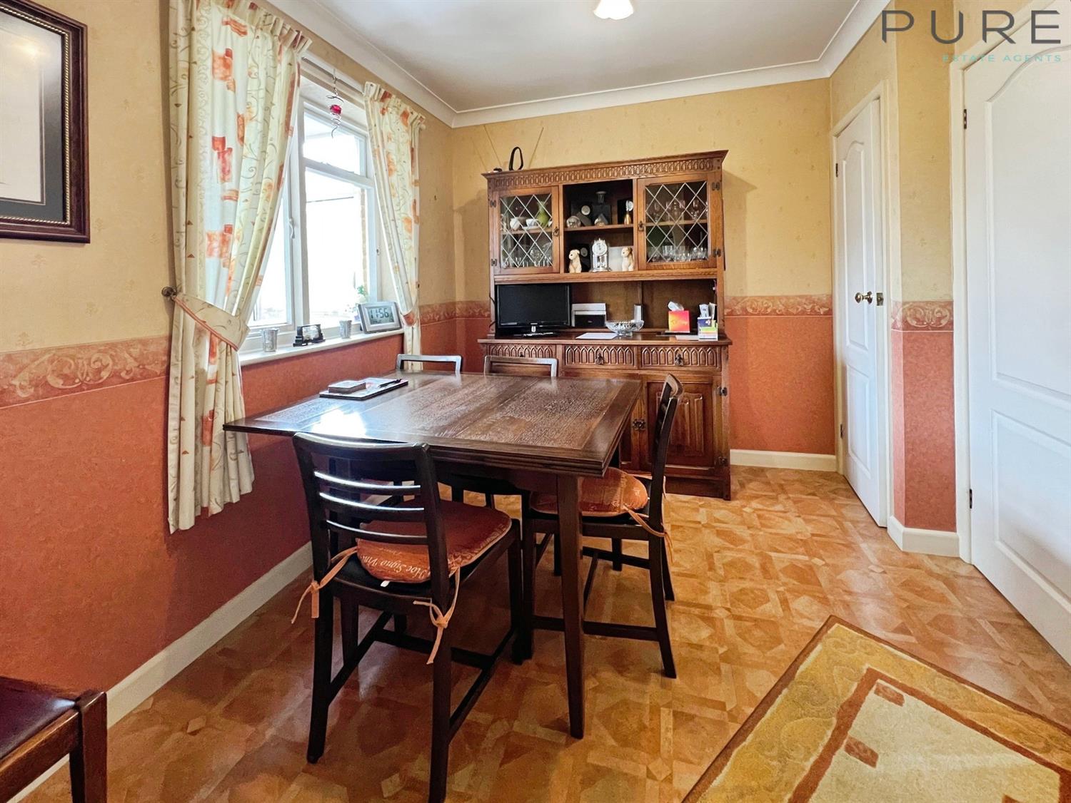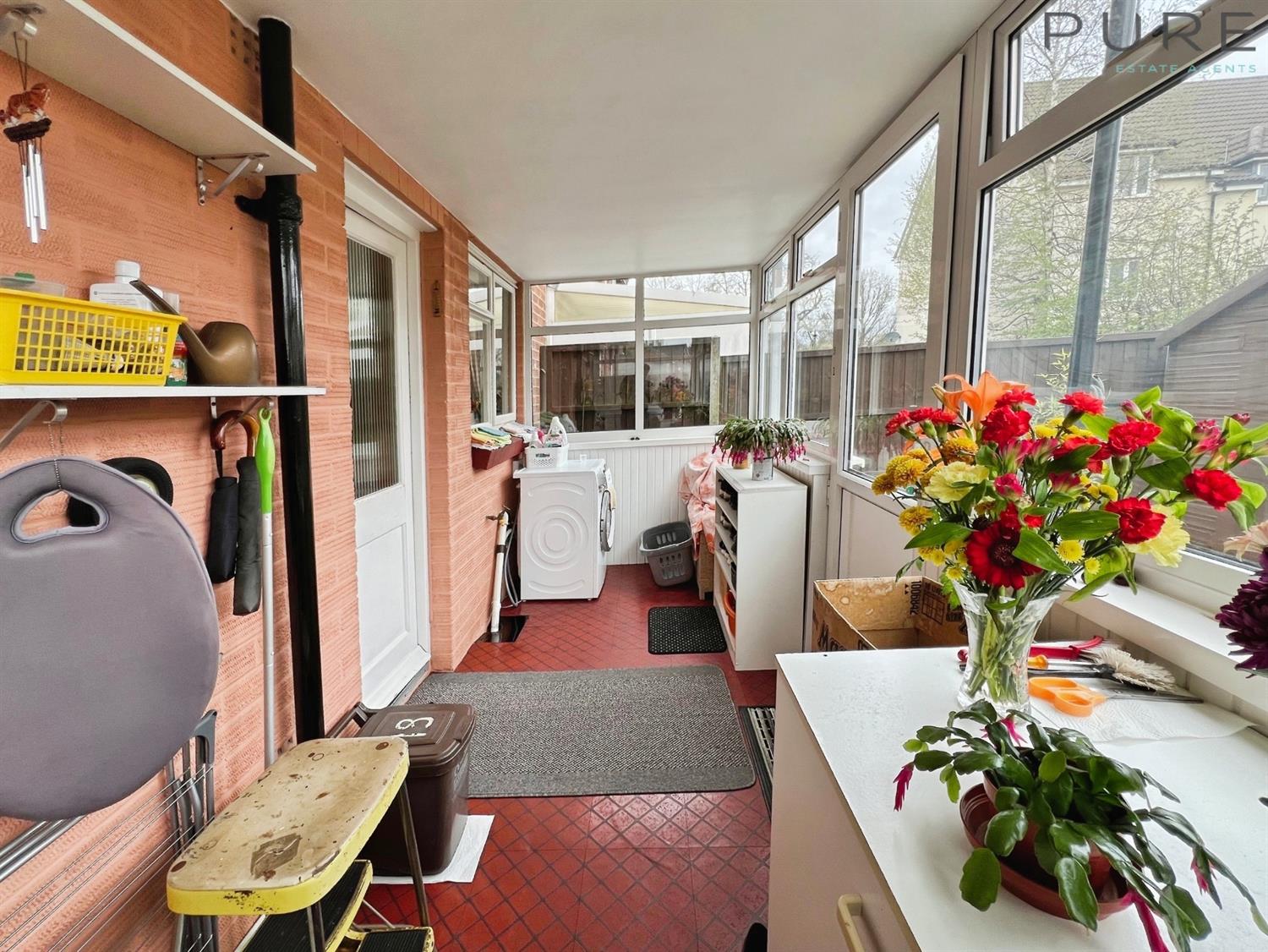 The ground floor includes two reception rooms, one featuring a gas fireplace, providing defined spaces for living and dining. There is a conservatory to the rear, adding additional versatile living space and direct access to the garden. A single garage and allocated parking to the front provide practical storage and off-road parking options.