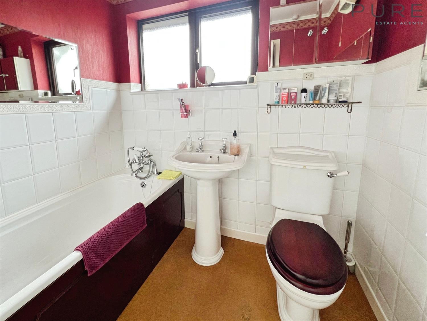 Upstairs, there are three double bedrooms. Two of the bedrooms benefit from built-in wardrobes, offering useful storage and maximising usable floor space. There is one bathroom serving the property.