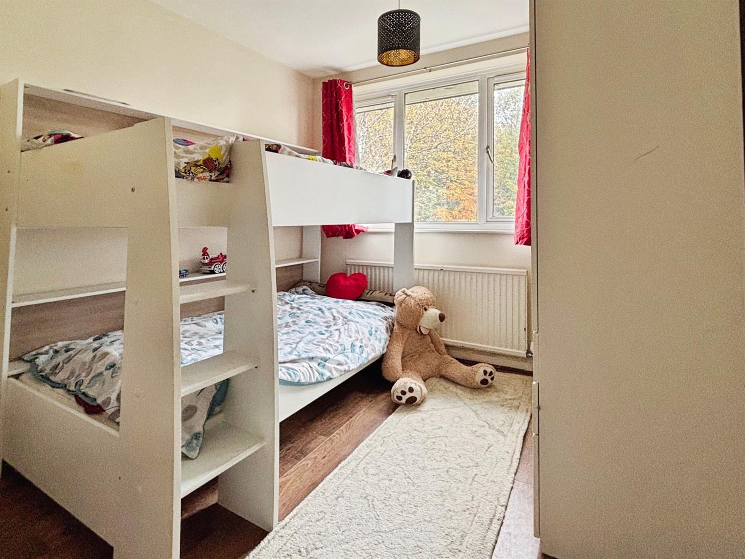 Three bedrooms provide flexible accommodation. The master bedroom is a double room with built-in wardrobes, offering practical storage solutions. The second bedroom is also a double, and the third is a single room, ideal for children, guests, or as a home office.