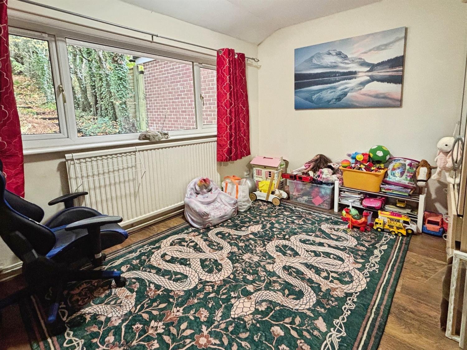 The family bathroom enjoys neutral decoration and is fitted with a shower over the bath, adding to the overall functionality of the home. The property also boasts a garden, providing outdoor space for leisure or gardening activities. A single garage offers secure storage.
