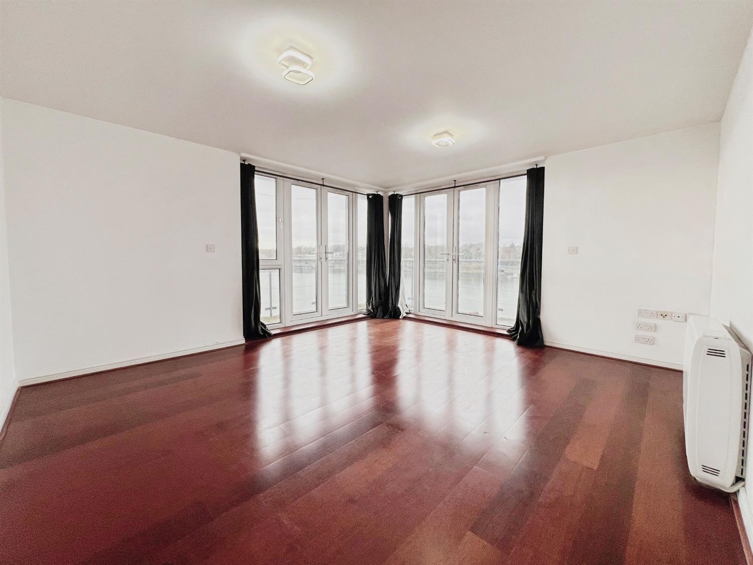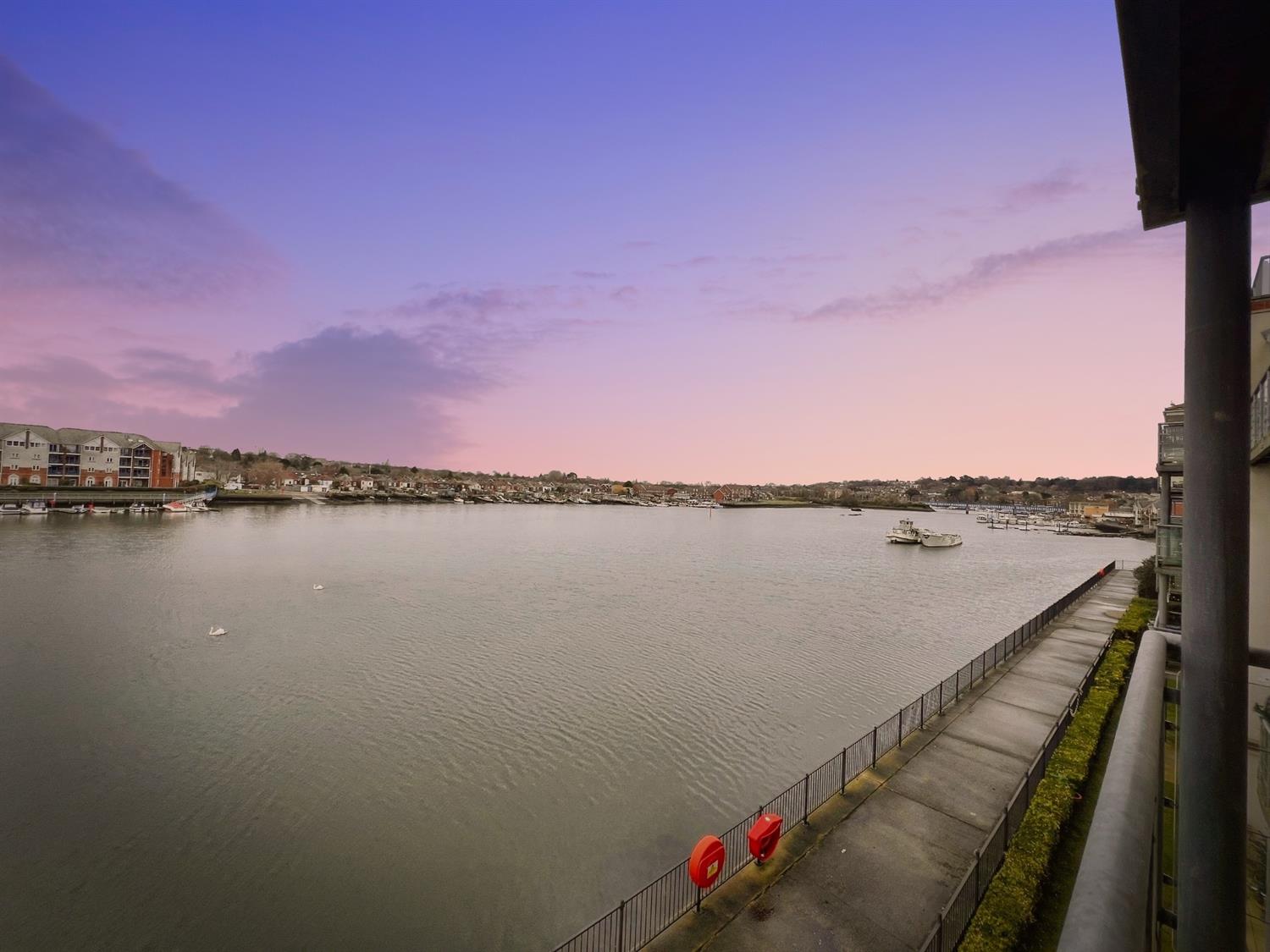The property provides a well-balanced layout, including one reception room with large windows and two sets of double doors, that make the most of the attractive water views and give direct access to a balcony, creating a pleasant space for relaxing or entertaining. There are two bathrooms: one with a shower over the bath and a second with a double shower and offers practical flexibility.