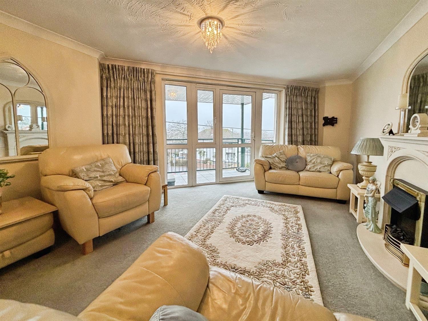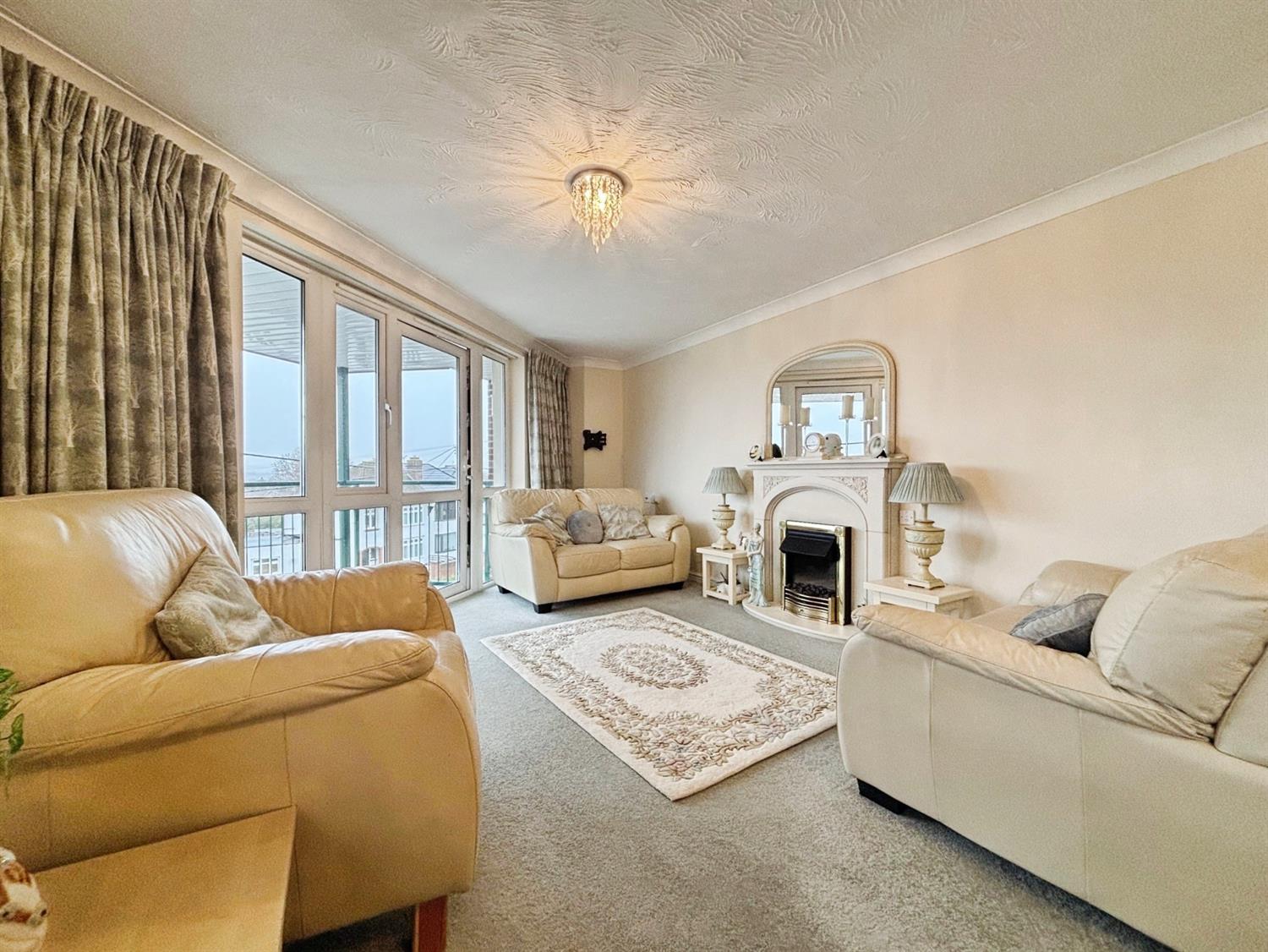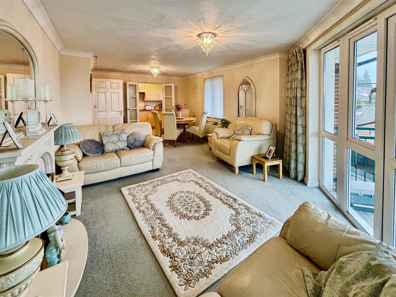 The property comprises a bright open-plan reception room with large windows, a defined dining area and access onto a balcony, creating a pleasant space for everyday use and entertaining. The separate kitchen benefits from good natural light and includes built-in appliances, offering a convenient and easy-to-maintain layout.