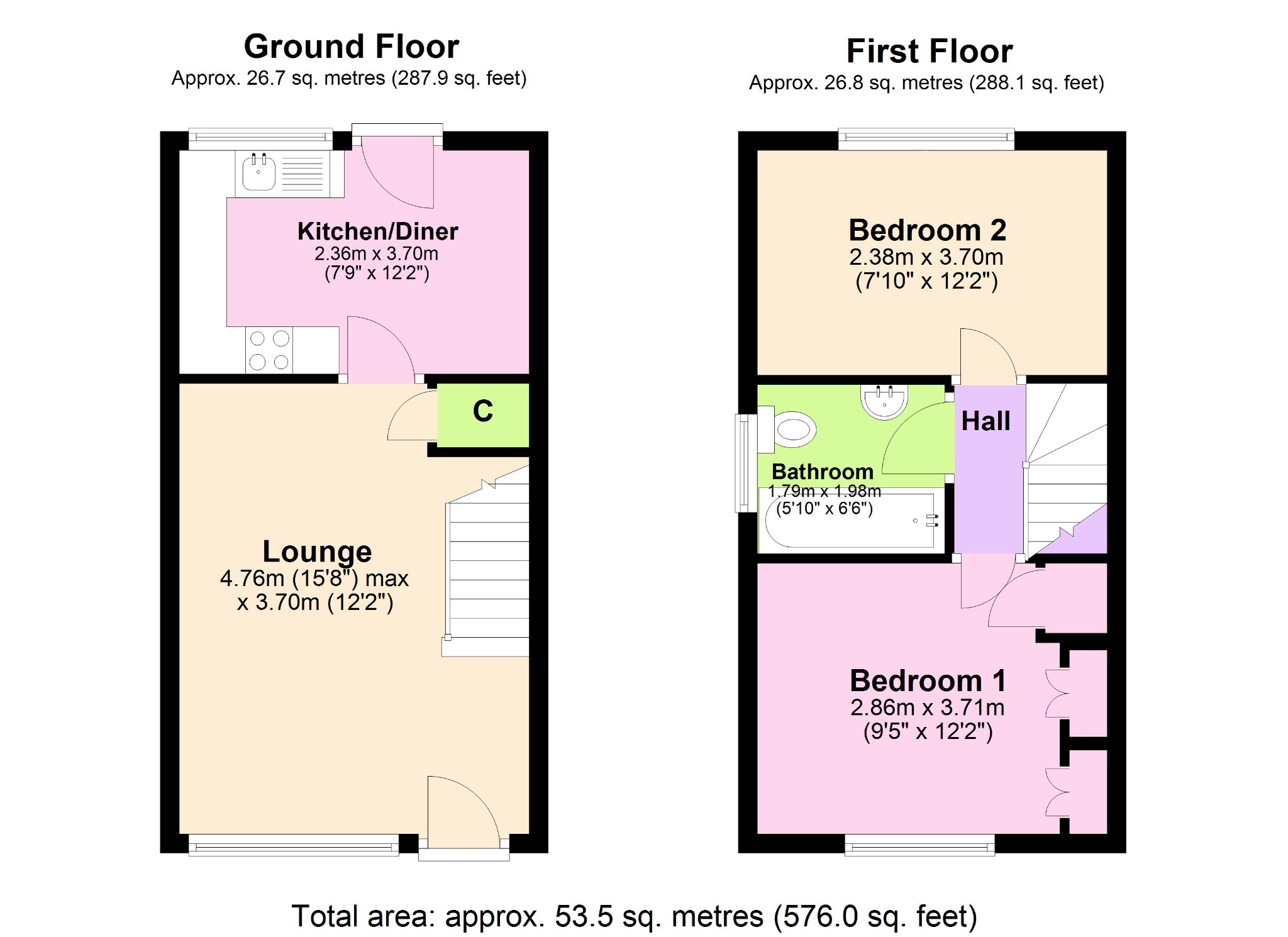 The property includes two double bedrooms, one of which benefits from built-in wardrobes, providing useful storage. There is a reception room and a kitchen, together with a bathroom, forming a practical layout for day-to-day living. The property has two allocated parking spaces. The home has an EPC rating of C.