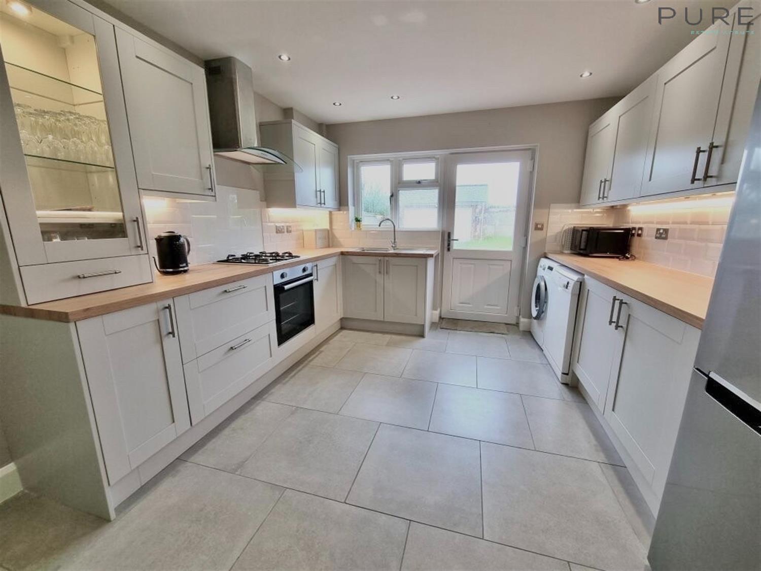 Upon entry, you have a hallway leading to all principle rooms. The hallway benefits from a loft which is fitted with a pull down ladder and offers a large boarded space for easy storage. There are four double bedrooms, two located to the front of the bungalow including the master which has a modern ensuite with walk in shower, wc and hand basin. Both the front bedrooms benefit from lovely bay windows and are very good sized doubles. The other two bedrooms are also a great size and benefit from built in wardrobes. The family bathroom is immaculately presented and has a large, walk in double shower, separate bath, wc and hand basin. The living room offers a lovely space for relaxing, overlooking the rear garden, with double patio doors leading onto the decking provided with a handy pergola. The kitchen is newly fitted around 18 months ago and supplied with oven, gas hob and space for other appliances. There is a single door which provides access into the garden.