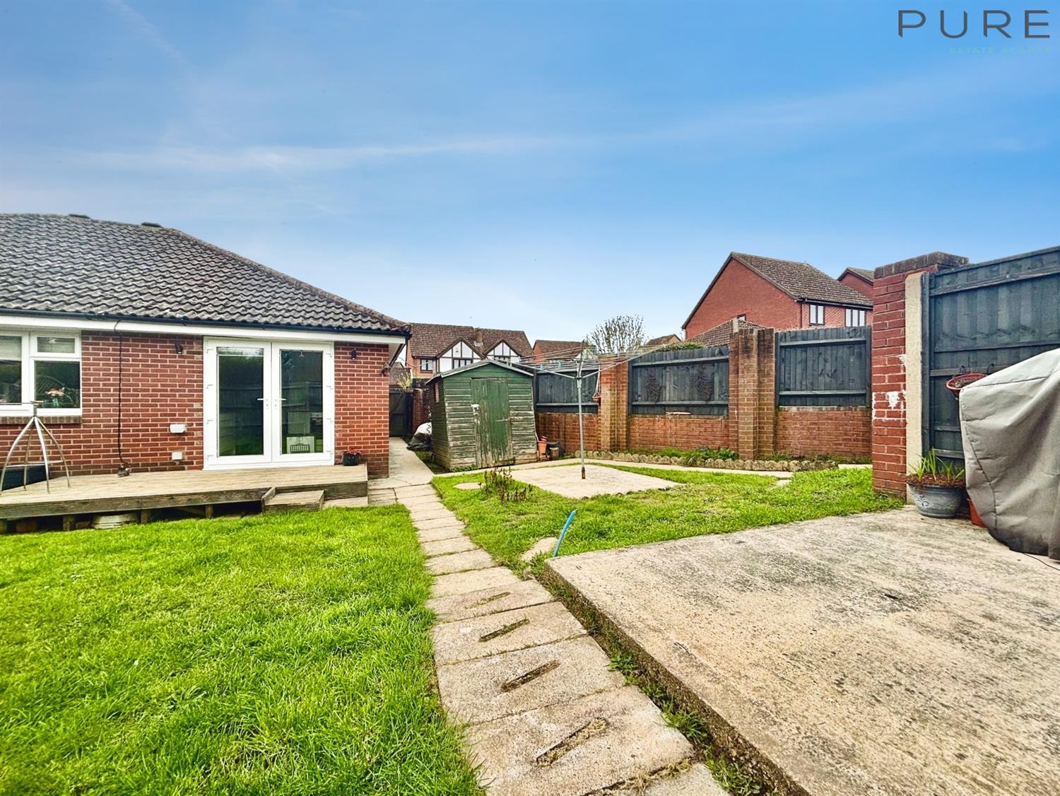 There are two bedrooms, including a double master bedroom, and a contemporary bathroom fitted with a walk-in shower. The layout is arranged on a single level, typical of a bungalow, offering straightforward access between rooms.