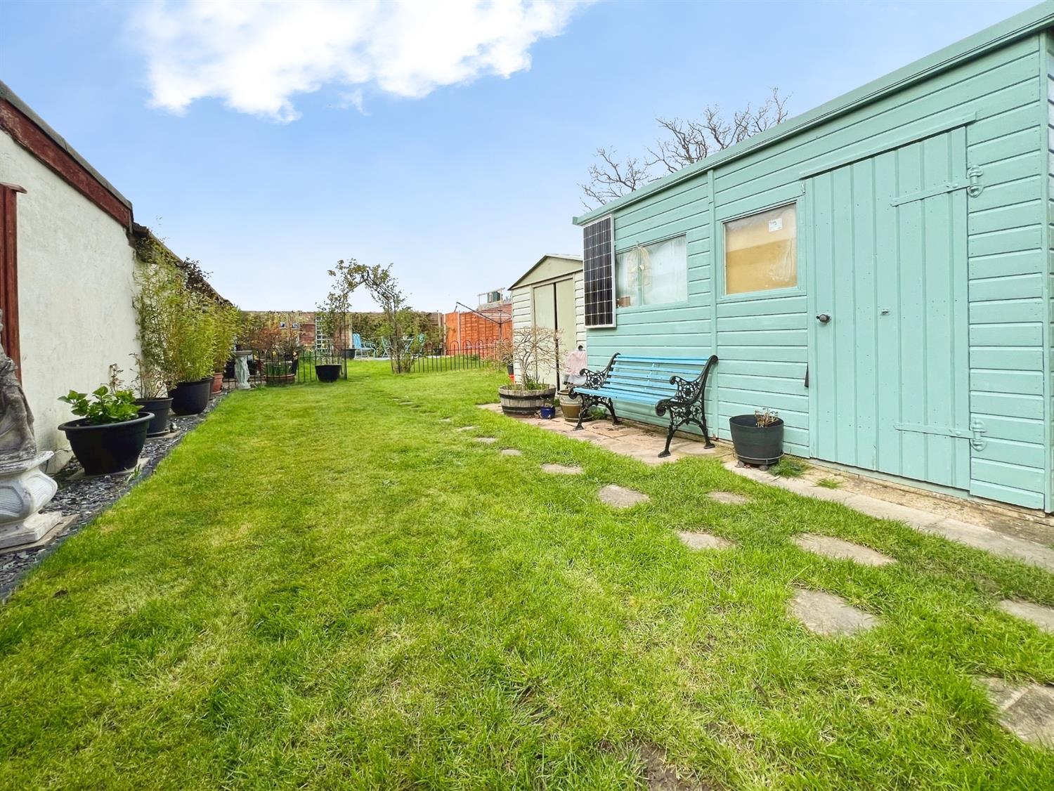 A key feature is the 95-foot rear garden, which is private, not overlooked, and backs onto Eling Recreation Centre, providing easy access to green space, play areas and sports facilities. There are also outbuildings offering plenty of external storage. To the front, a block-paved driveway provides parking for two cars. The property benefits from gas central heating via a combi boiler, installed around six years ago and still under warranty, along with recently renewed guttering and fascias.
