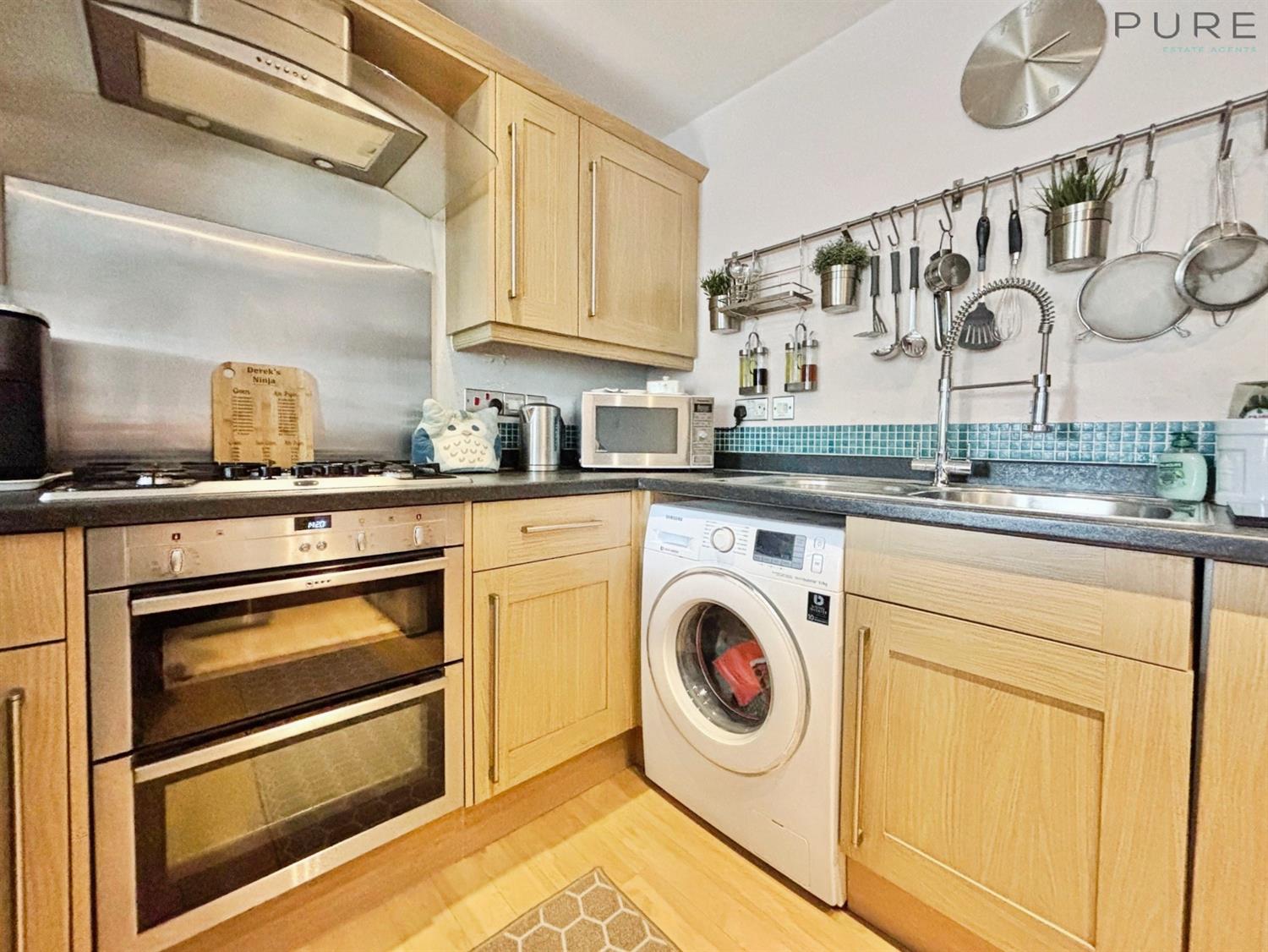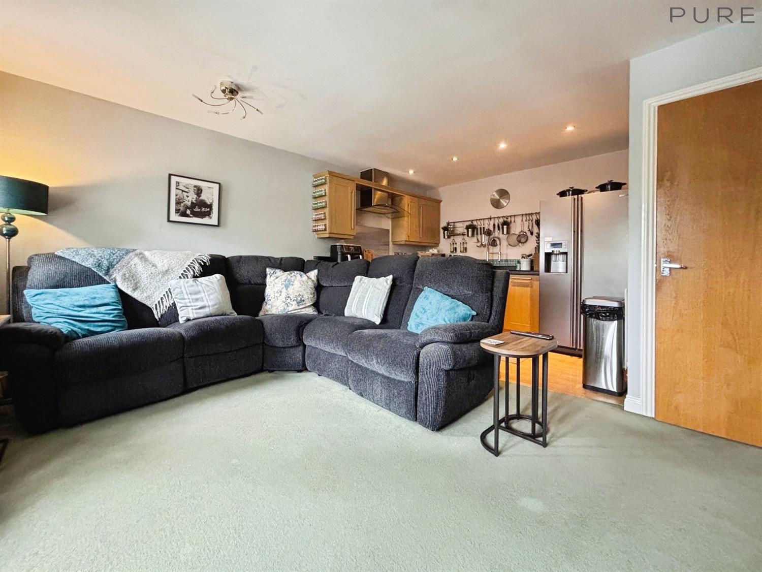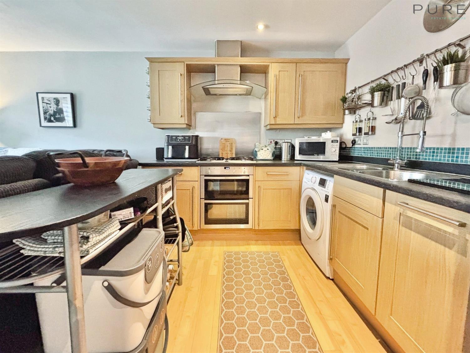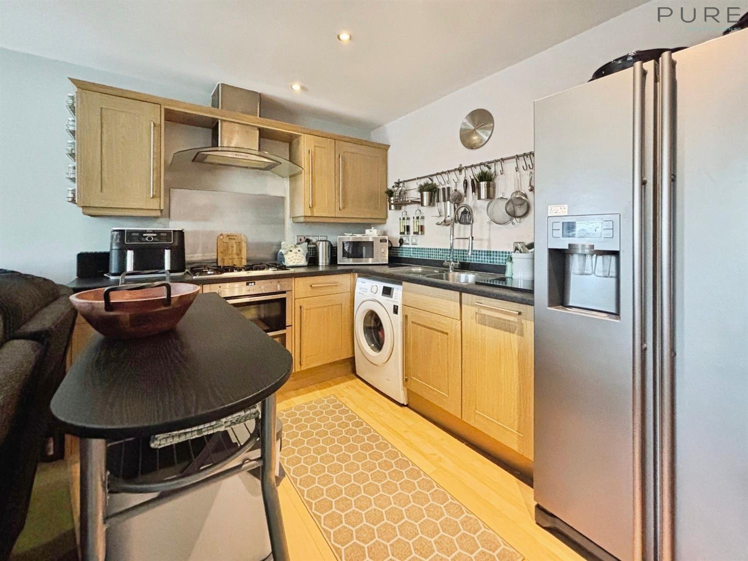 The open-plan kitchen area is designed to integrate comfortably with the main living space, making it suitable for modern living and entertaining. The main bedroom is a double room with built-in wardrobes and an en-suite shower room, offering convenient private facilities. A further double bedroom and a single bedroom provide flexible accommodation for family living, guests, or a home office. There is an additional bathroom serving the remaining bedrooms. Parking is included with the property, adding to its day-to-day practicality.