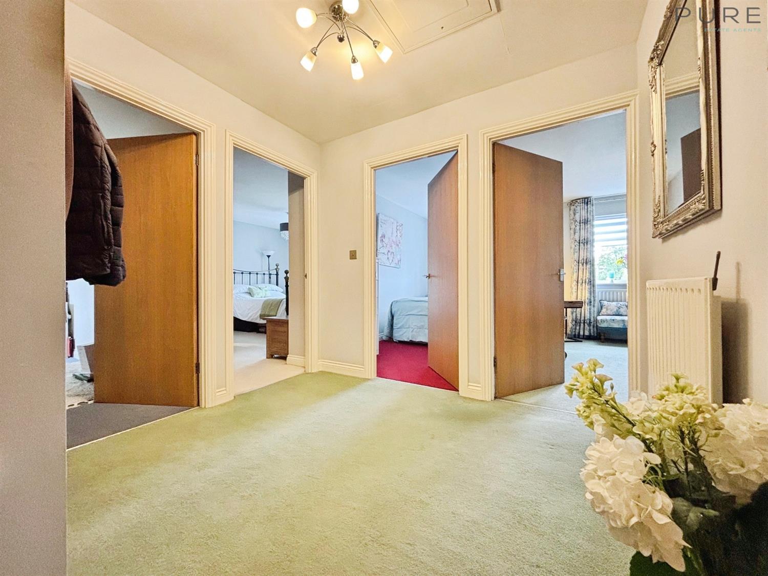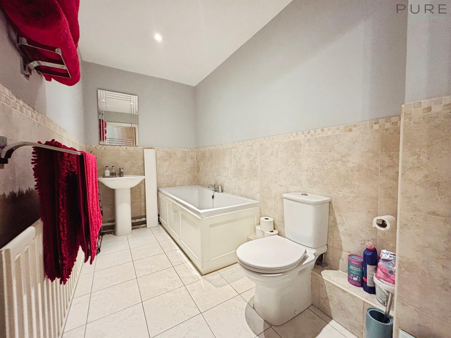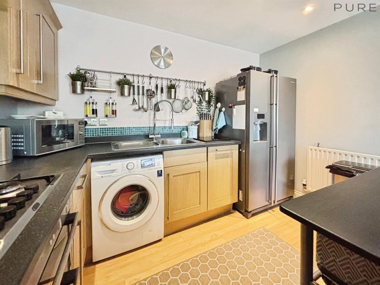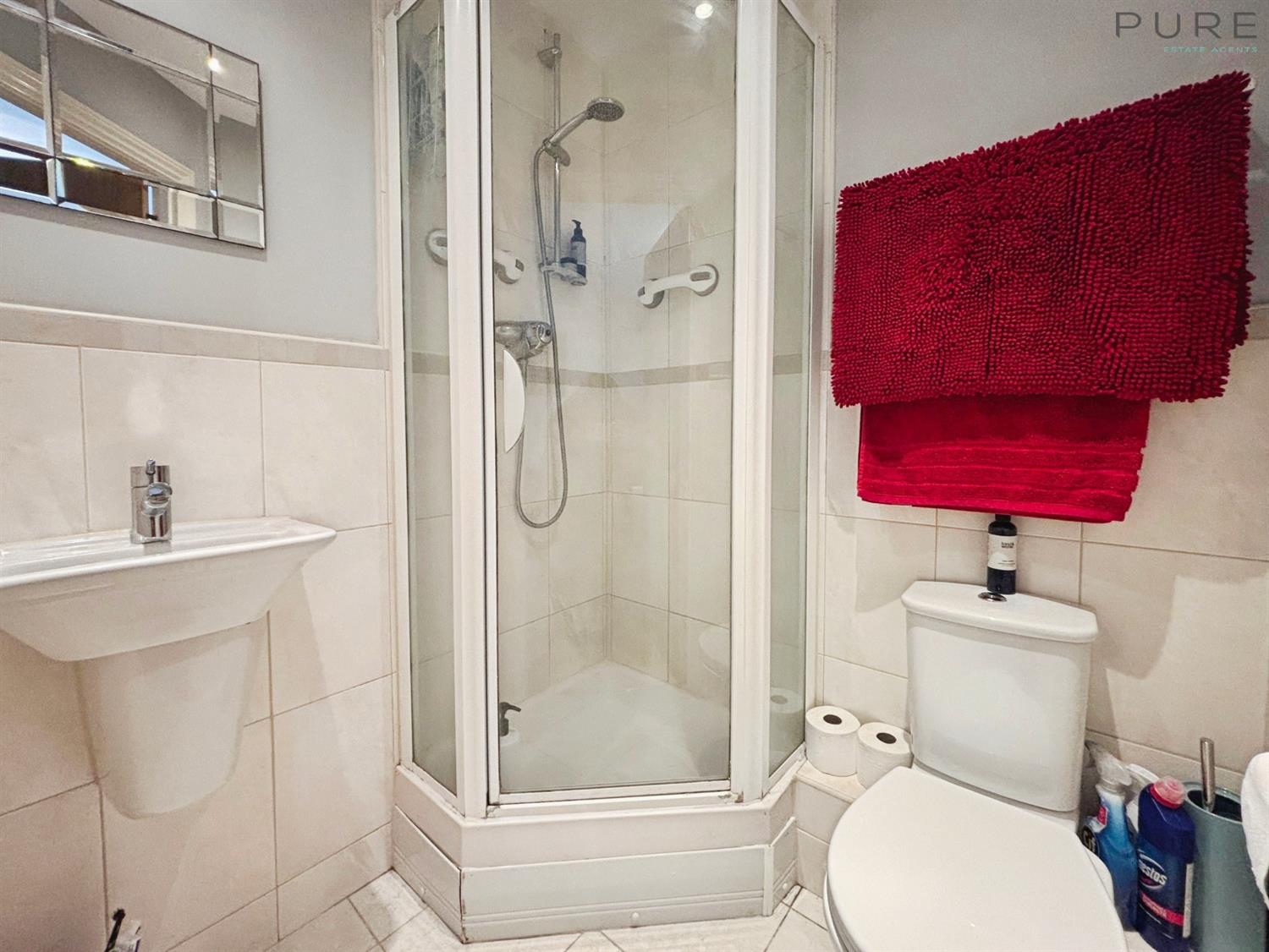 The open-plan kitchen area is designed to integrate comfortably with the main living space, making it suitable for modern living and entertaining. The main bedroom is a double room with built-in wardrobes and an en-suite shower room, offering convenient private facilities. A further double bedroom and a single bedroom provide flexible accommodation for family living, guests, or a home office. There is an additional bathroom serving the remaining bedrooms. Parking is included with the property, adding to its day-to-day practicality.
